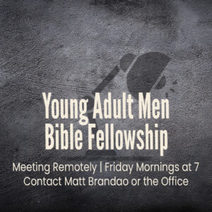 College and career young adult men meet for Bible Study every Friday at 7am. Currently meeting remotely. Contact us for more information.